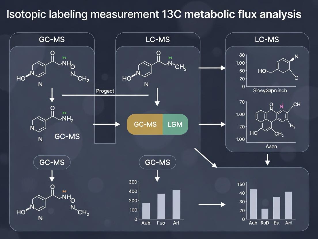 This article provides a comprehensive overview of 13C Metabolic Flux Analysis (MFA) using GC-MS and LC-MS platforms. Aimed at researchers and drug development professionals, we explore the foundational principles of isotopic labeling, detail methodological workflows from tracer design to data acquisition, address common troubleshooting and optimization challenges, and critically evaluate the validation and comparative strengths of mass spectrometry platforms. This guide synthesizes current best practices to empower accurate quantification of intracellular metabolic fluxes for applications in systems biology, biotechnology, and therapeutic discovery.