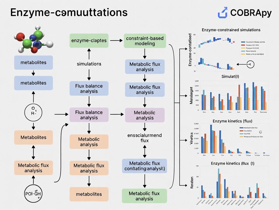 COBRApy provides a powerful, flexible, and Python-native framework for constructing and simulating enzyme-constrained metabolic models, moving beyond standard FBA to more accurately predict physiological states. By mastering the foundational integration of enzyme kinetics, following methodical implementation steps, applying troubleshooting techniques for robust simulations, and validating models against established tools and data, researchers can significantly enhance the predictive power of their metabolic analyses. The future of ecFBA in COBRApy lies in the automated integration of omics data, improved kinetic parameter databases, and applications in personalized medicine and host-pathogen modeling, offering profound implications for rational strain design and the discovery of novel, context-specific drug targets in complex diseases.