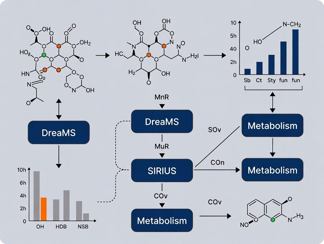 This article provides a detailed comparative analysis of DreaMS (Data-driven and Rule-based Exact Annotation of Mass Spectra) and SIRIUS, two leading computational platforms for annotating metabolites from LC-MS/MS data.