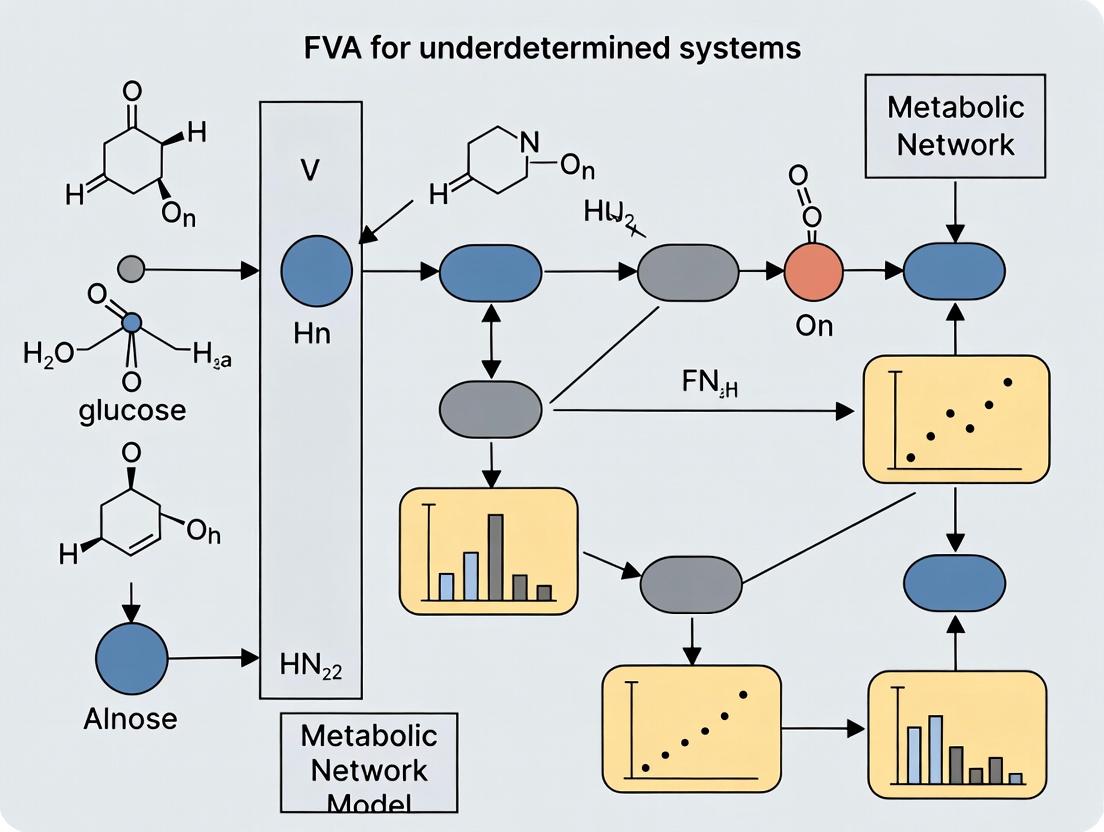 Flux Variability Analysis is an indispensable computational tool for navigating the inherent uncertainty of underdetermined metabolic systems. By moving beyond single-point predictions to define feasible flux ranges, FVA provides a nuanced view of metabolic network flexibility, robustness, and potential vulnerabilities. As demonstrated, its successful application hinges on a solid foundational understanding, careful methodological implementation, and strategic optimization using experimental data for constraint refinement. The comparative validation underscores its complementary role with experimental flux measurements and other computational approaches. Looking forward, the integration of FVA with multi-omics datasets and machine learning, along with developments in multi-strain and community modeling, will further enhance its power to decode complex metabolic adaptations in disease and drive the discovery of novel therapeutic interventions. For researchers in biomedicine and drug development, mastering FVA is key to translating static metabolic maps into dynamic, actionable insights.